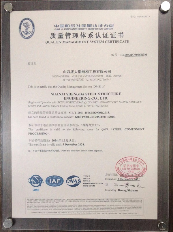 山西盛大鋼結構工程有限公司,成立于1996年5月,是中國鋼結構協(xié)會會員單位,山西鋼結構協(xié)會副會長單位。成立二十多年來,公司始終秉持“質量為本,科技創(chuàng)新,誠信創(chuàng)業(yè),共謀雙贏”的經(jīng)營理念,堅持走“創(chuàng)新、協(xié)調(diào)、綠色、發(fā)展、共享”的發(fā)展之路。未來,山西盛大鋼結構公司將繼續(xù)在董事長賈怡明的帶領下,嚴把生產(chǎn)質量和鋼結構工程質量關,不斷向致力于打造“年產(chǎn)十萬噸山西鋼結構加工基地”的目標邁進。